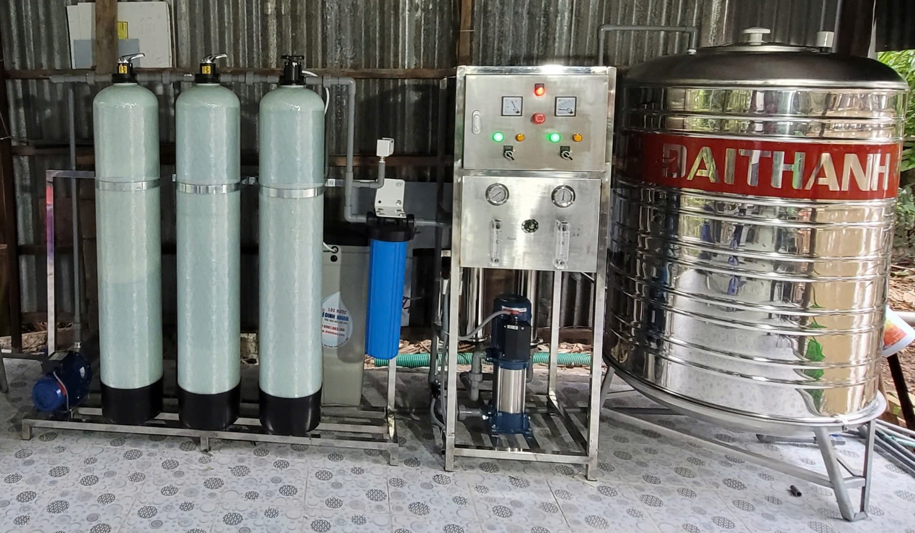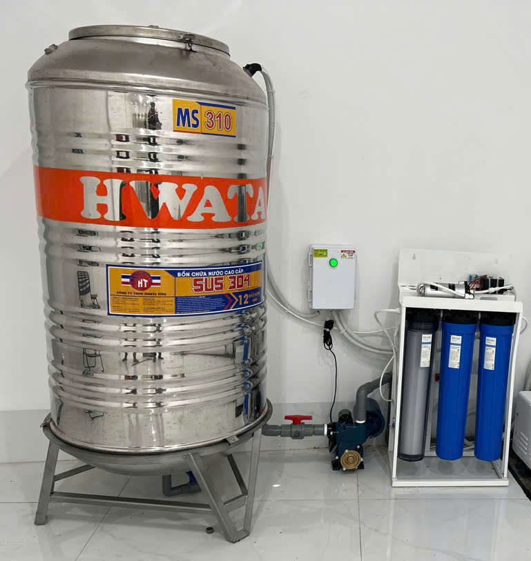 HỆ THỐNG LỌC NƯỚC TINH KHIẾT CÔNG NGHỆ RO - Bồn chứa nước bằng inox 304 300 lit - Màng lọc RO Dow filmtec xuất xứ Mỹ - Hệ thống điều khiển tự động - Bơm tăng áp cho đường ống Panasonic - Cam kết TDS < 20mg/l - Đèn diệt khuẩn UV - Bảo hành 12 tháng